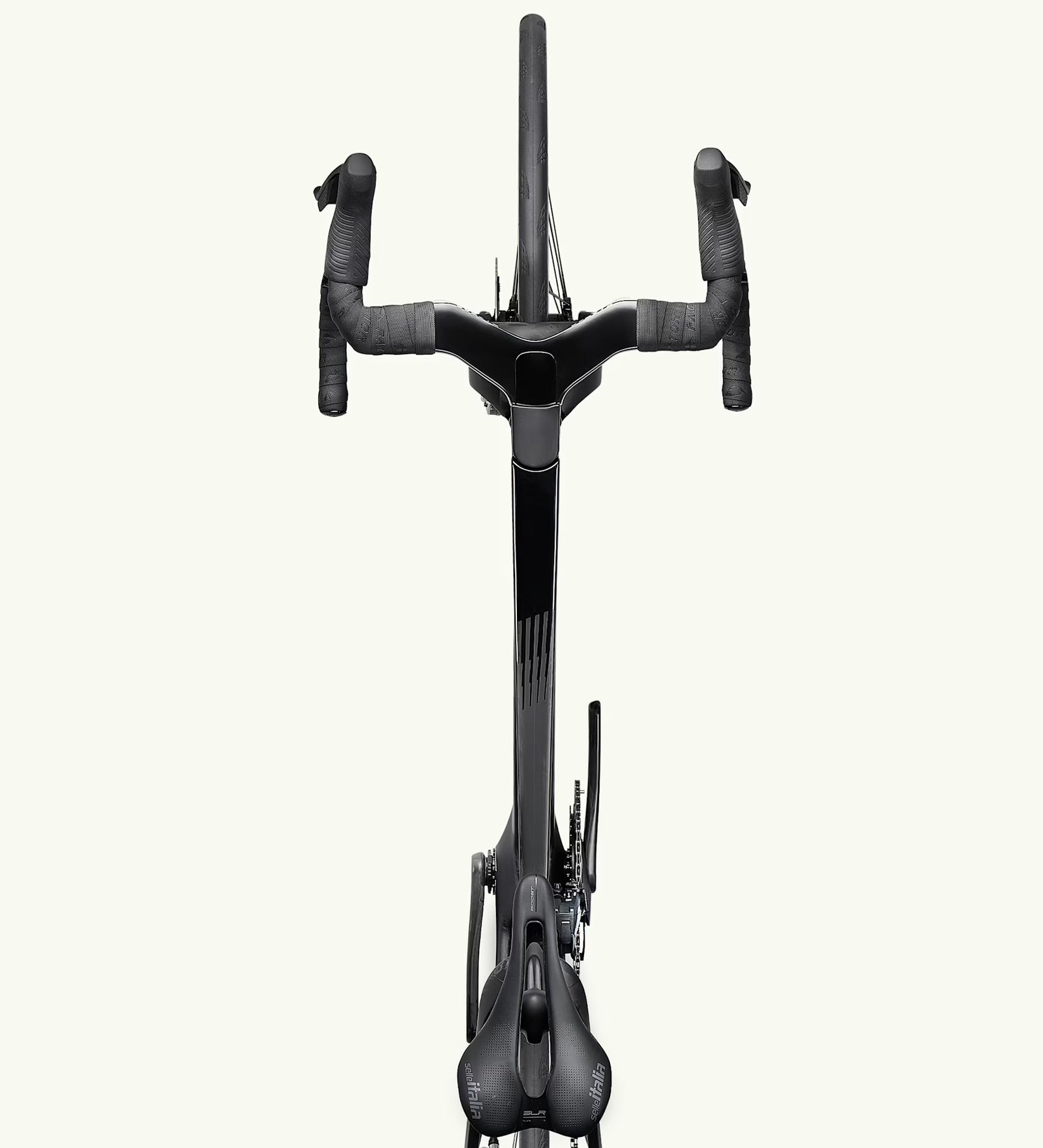 L'aérodynamisme ne représentait que la moitié du travail. La position du cycliste moderne a évolué : cintres plus étroits, selles plus avancées, manivelles plus courtes, autant d'éléments qui déplacent le poids du cycliste vers l'avant. Sans une géométrie soigneusement étudiée, l'équilibre du vélo peut être compromis, augmentant ainsi le risque de chute. La géométrie du ONE a été conçue pour s'adapter à ces positions typiques du WorldTour, sans aucun compromis. En découplant la fixation du cintre de l'axe de direction, nous offrons aux cyclistes la position la plus allongée possible sans recourir à des potences instables et trop longues. Nous avons ajusté la hauteur du boîtier de pédalier pour compenser le centre de gravité plus haut dû aux manivelles plus courtes et aux pneus plus larges, préservant ainsi la stabilité et l'équilibre du poids avant/arrière. Même dans les plus petites tailles, le ONE conserve une géométrie de direction identique à celle des plus grands cadres, une rareté sur les vélos de route haute performance.