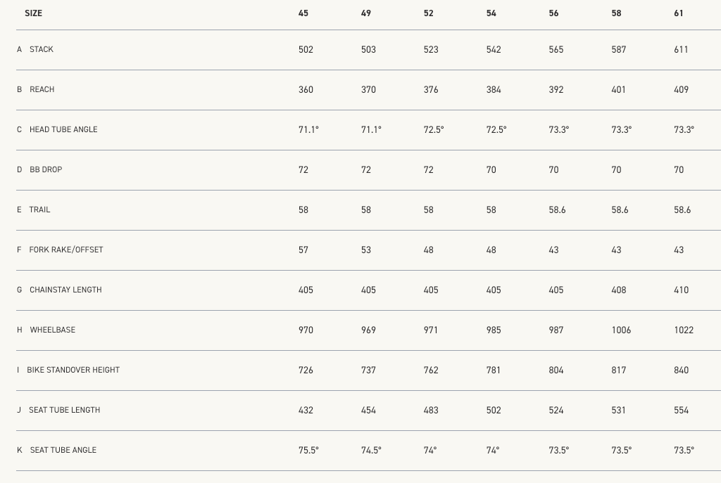 En réponse à l'analyse des données de position des clients et des athlètes professionnels, deux changements clés ont été apportés. Tout d'abord, un cadre de 45 cm a été ajouté à la gamme. Deuxièmement, l'angle du tube de selle est plus raide de 0,5º.
