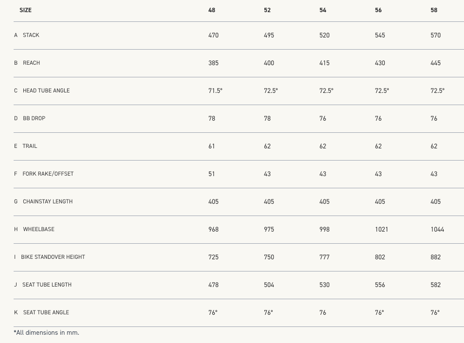 La géométrie axée sur les performances du SLiCK s'adapte toujours à un pourcentage élevé de tailles de cyclistes, avec une attention particulière portée aux cyclistes plus petits.