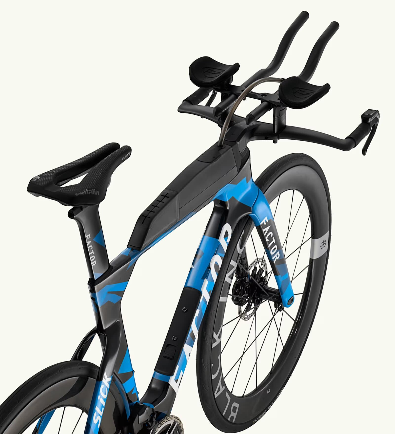 S'appuyant sur le savoir-faire de Factor en matière de fabrication et sur ses compétences exceptionnelles en matière de fibre de carbone, le vélo de triathlon dédié SLiCK comble le vide pour le triathlète de haut niveau qui cherche à ajouter un vélo de triathlon optimisé pour l'aérodynamisme, tout en tenant compte de ses besoins pratiques dans chaque élément de conception. Une aérodynamique supérieure se combine à des fonctionnalités utilitaires astucieuses.